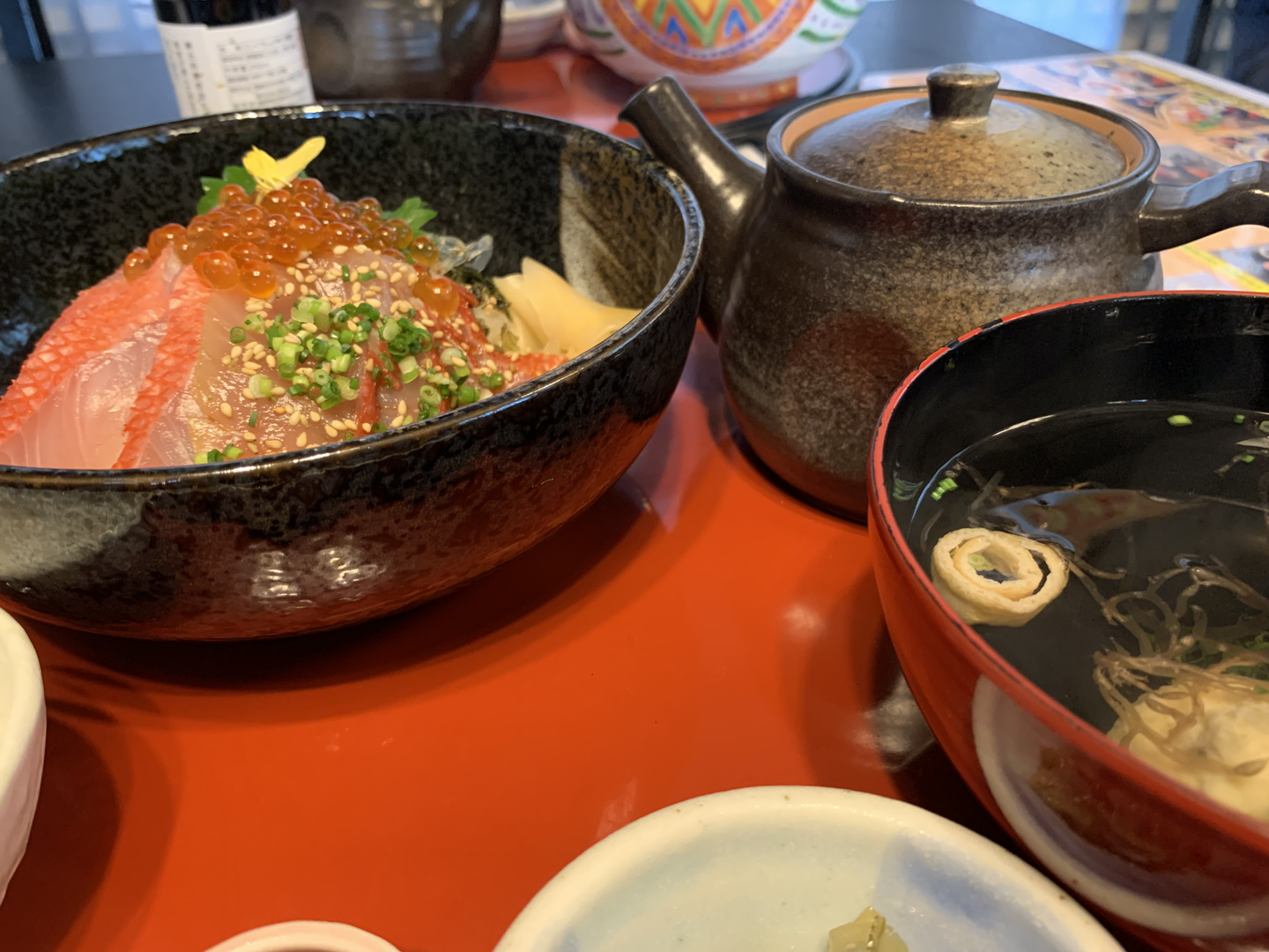 海沿いというのもあり、海鮮丼、干物や刺身を取り扱う魚屋がいくつかお店を構えておりました。
