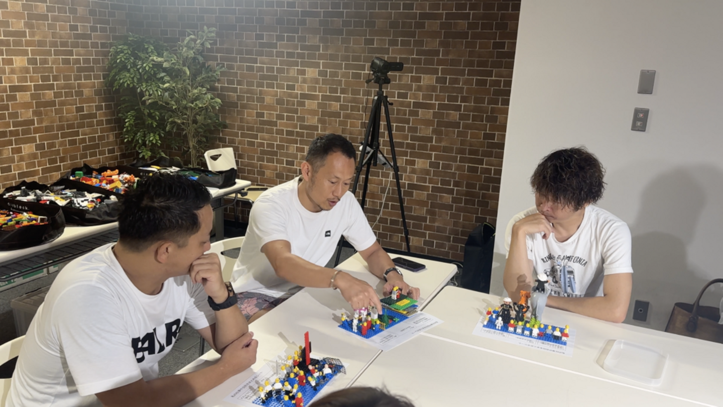 1.何を提供しているのか?2.誰にどんな方法で価値を届けているのか?3.どうやってその価値を高めているのか、または協力者は誰なのか?大きくこの3つの要素に分けて自分の仕事をレゴ®を使って表現していく。
