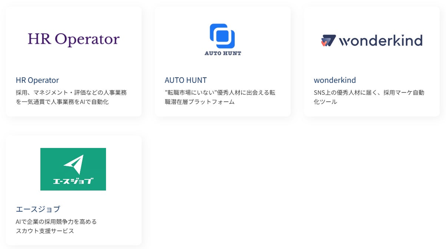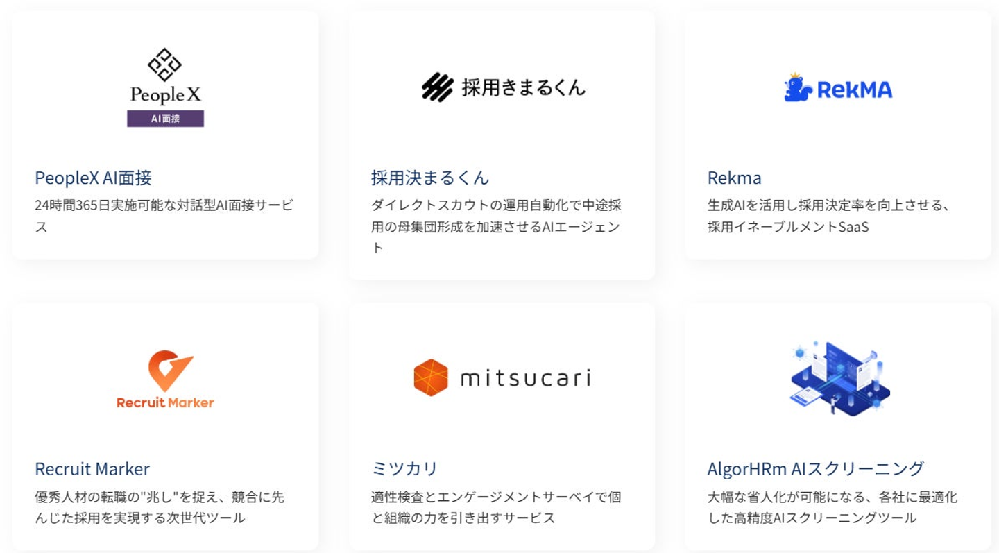 中途採用支援事業を通して、これまで培ってきたHRの豊富な知見を最大限に活かし、企業の個別課題に合わせたAIカスタマイズ開発と、国内外の先進的なAI×HRプロダクトの提供を通じて、人事業務のDXを強力に推進します。