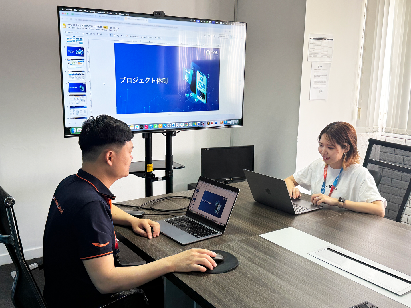 例えば、海外の開発メンバーとお客様との間でコミュニケーションの齟齬が起きないように、定例会でいつも以上に気を配るなど、自分の強みであるコミュニケーションの部分で貢献しようと意識しています。これは、海外と連携するモアアジアならではの難しさであり、面白さでもありますね。