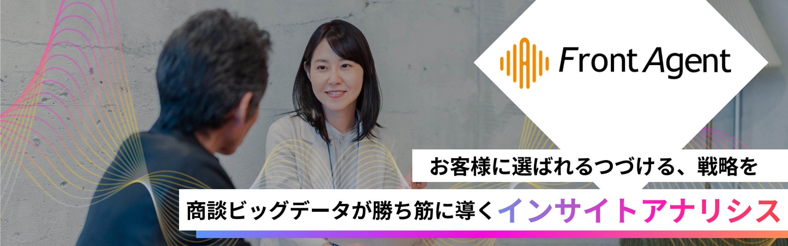 営業は以前から属人的であり、ほとんどが個人の能力に依存しています。 そして、商談は個人の経験で行われ、なぜ売れた・売れないが個人が原因と名指しされるだけ。 私たちは、人が会話時に無意識に意識しているインサイトを抽出する、自社開発のAIエンジン”Deep Insight Enghine™”をコアに、商談ビッグデータから勝ち筋・戦略の妥当性を飛躍させるインサイトアナリシス「Front Agent®」を通して、企業の再現性ある成長を1stミッションとして目指しています。(特許技術所有)