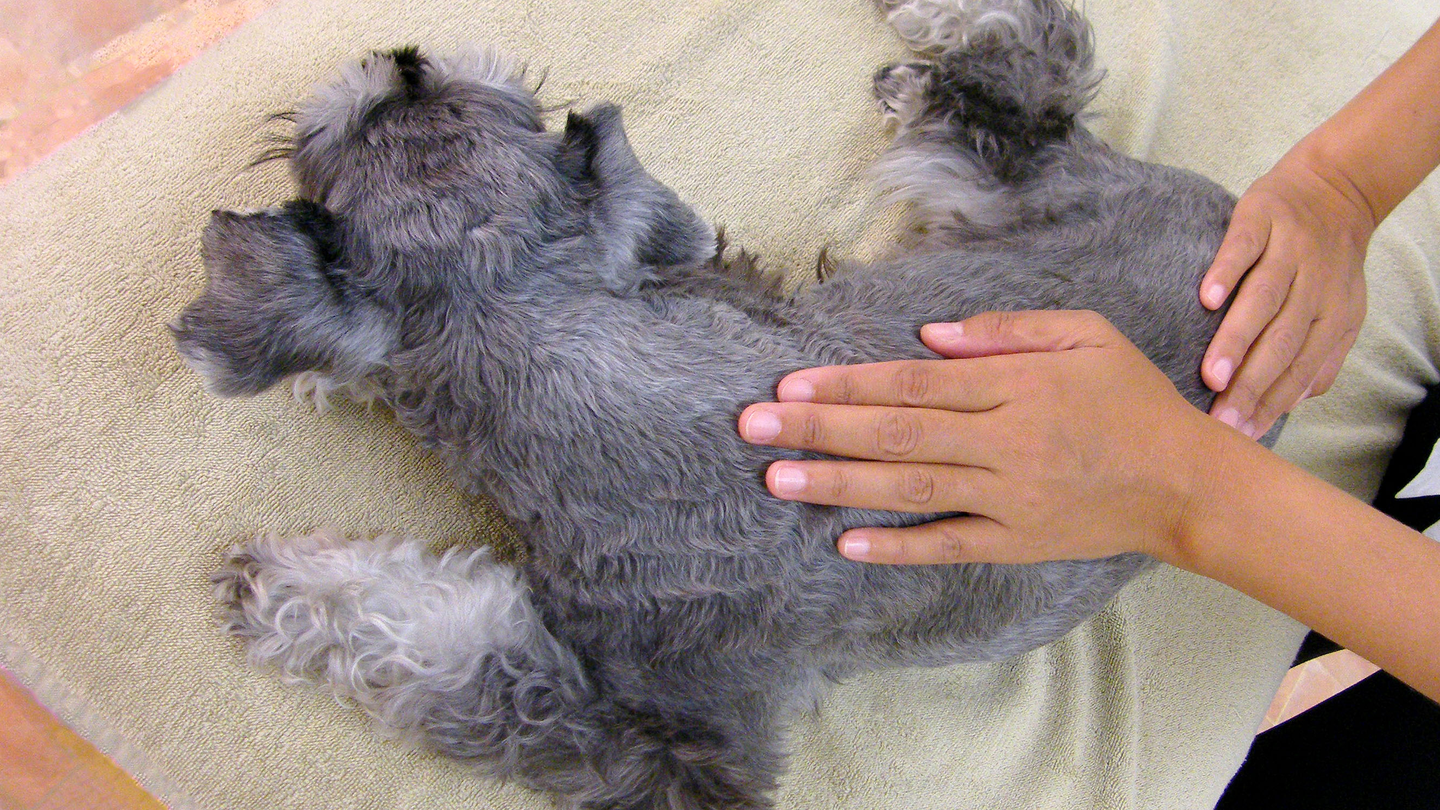 ▲アロママッサージを受けるワンちゃん