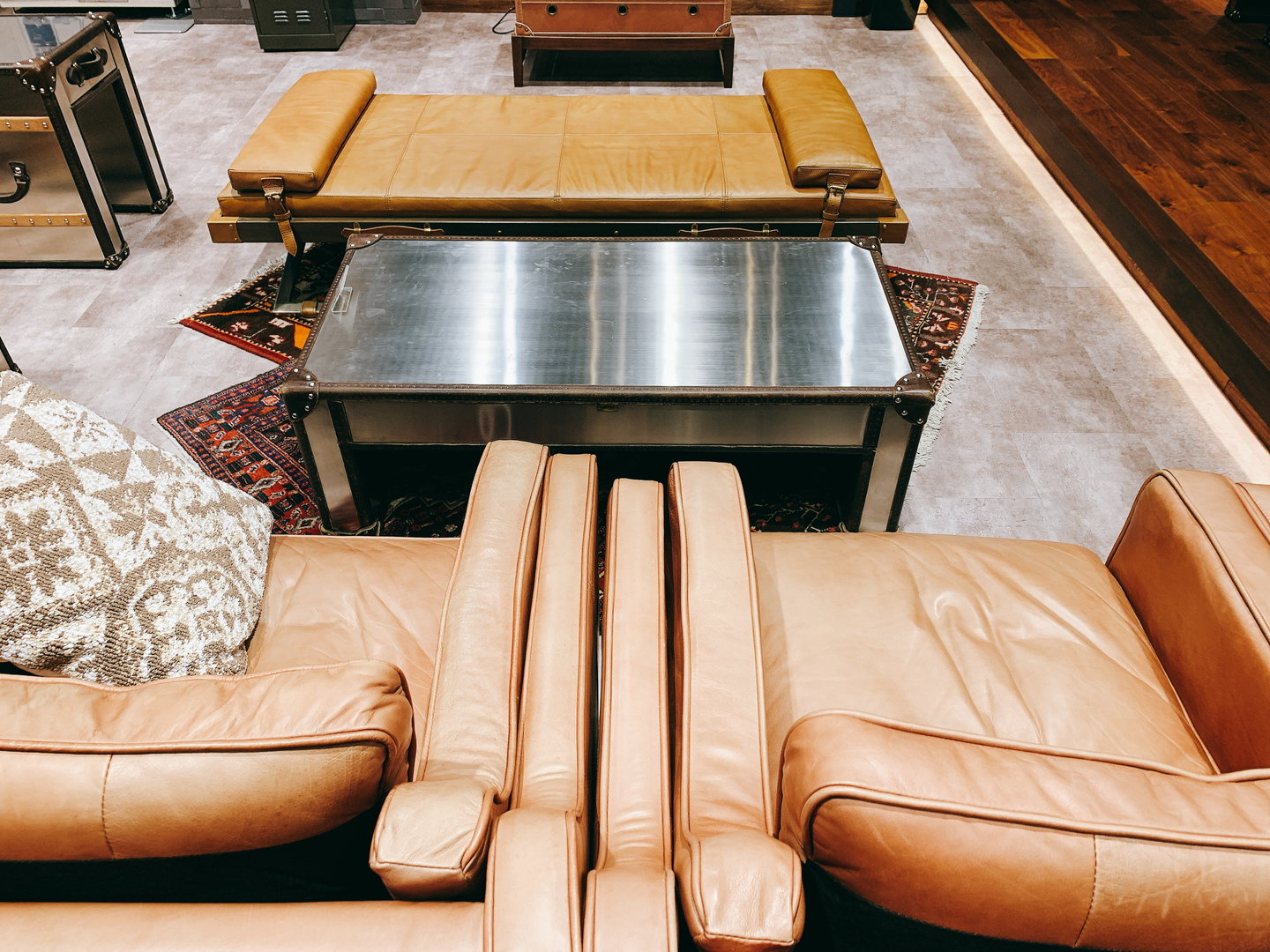 ラウンジには、繊細でいて大胆な「HALO」の家具や、たくさんのオブジェが並ぶ心地良いスペースを