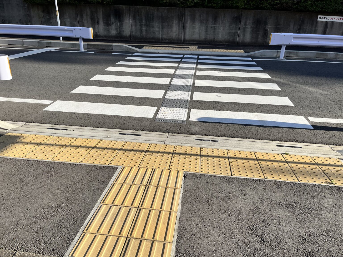 横断歩道の中央に設置されている突起によるラインです。足裏や杖でたどることで、安全に横断歩道を渡れます。