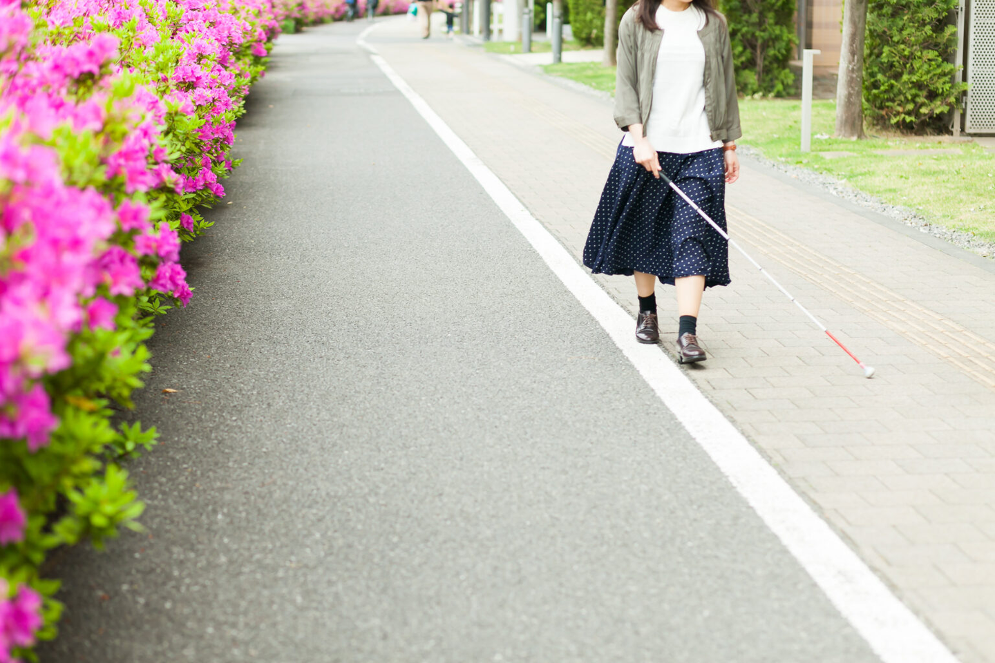 白杖(はくじょう)は、視覚障害者が道を歩く時に持つ杖のことです。視覚障害者が、1歩先の地面を叩いたり、スライドすることで、進行方向の状況を確認するために使用します。