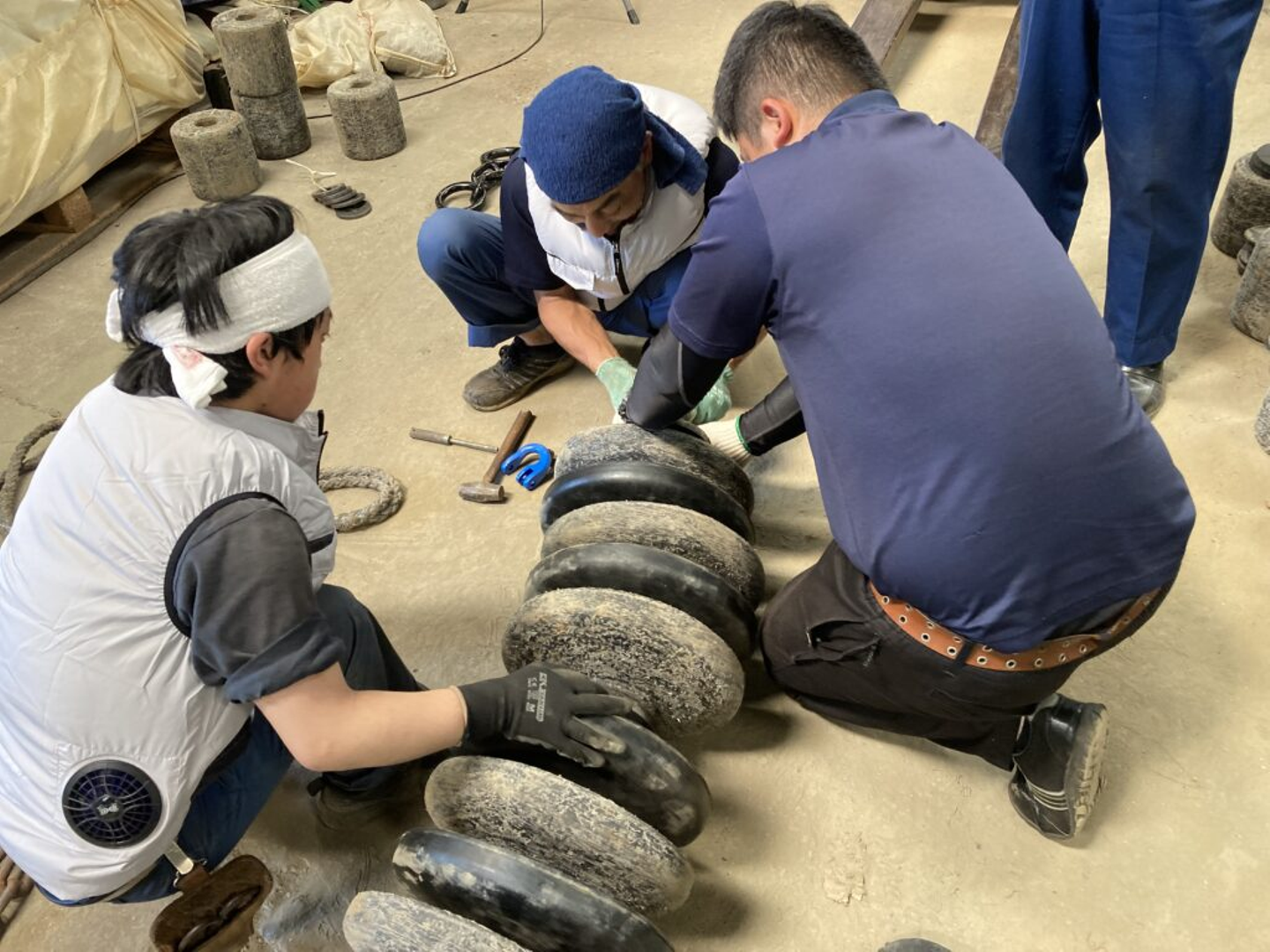 二艘底びき網漁業は6月1日~8月14日まで休漁であり、その期間に漁具の準備をする。
