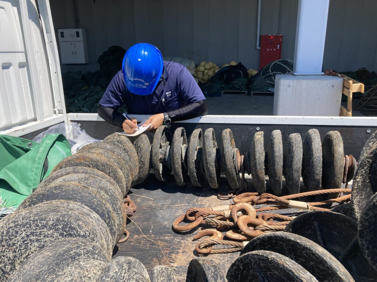 今回は二艘底びき漁船のグランドロープの仕様をお客さんと打ち合わせをし、工場に依頼する内容であった。