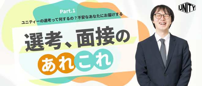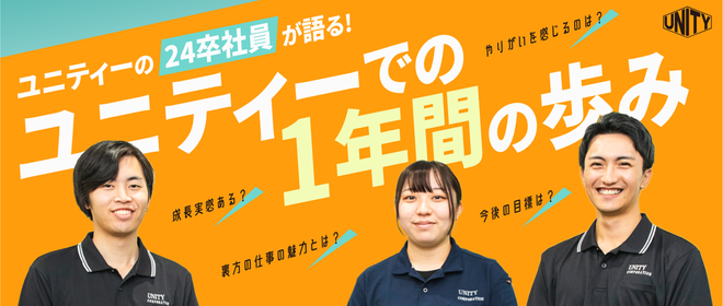 ユニティーは学歴や年齢、経験、スキルに偏った選考を行いません。個性と人格を尊重し、一人ひとりと向き合いお互い成長できる会社を目指しています。