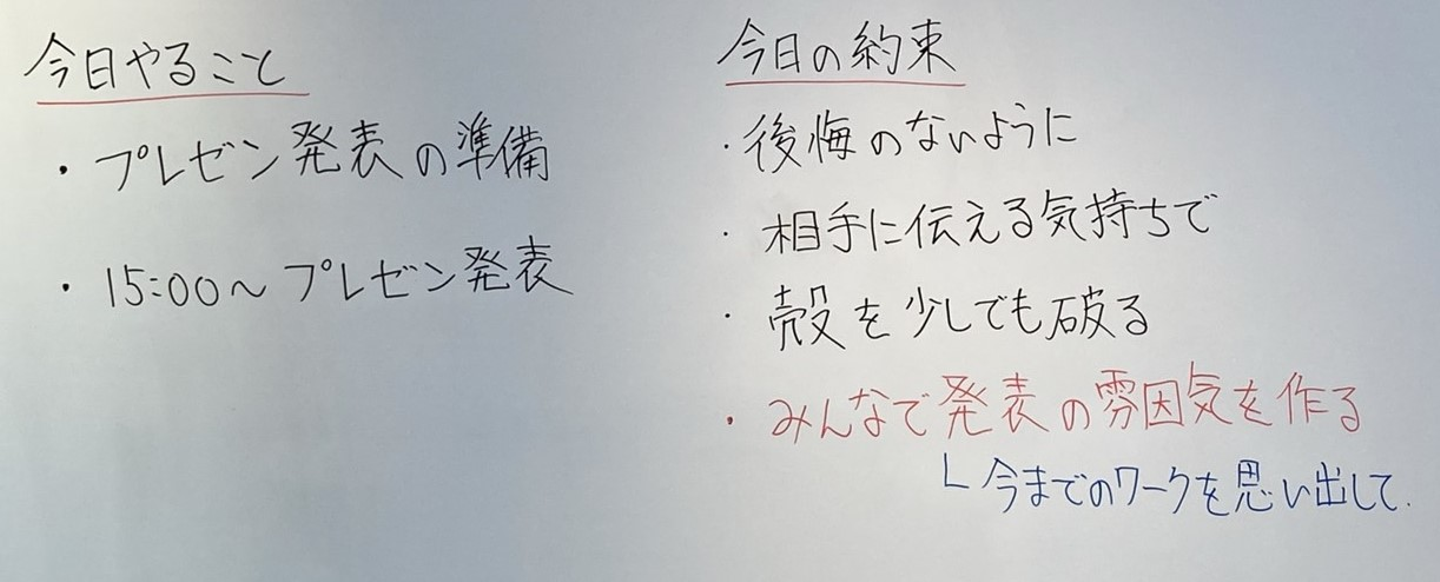 (発表練習で少しでも気になることはシェアをして、仲間が困っている時は自然と助け合う。本当に良いチームワークになりました!担当者はその姿を見てウルウルきていたのは本当の話です(笑)