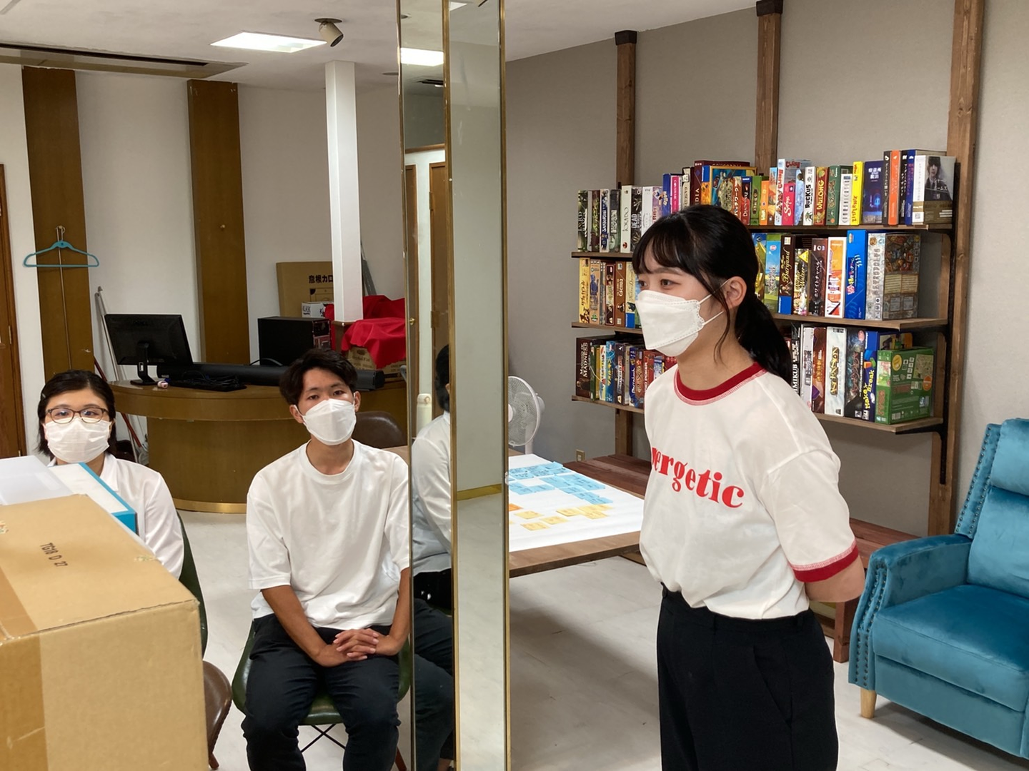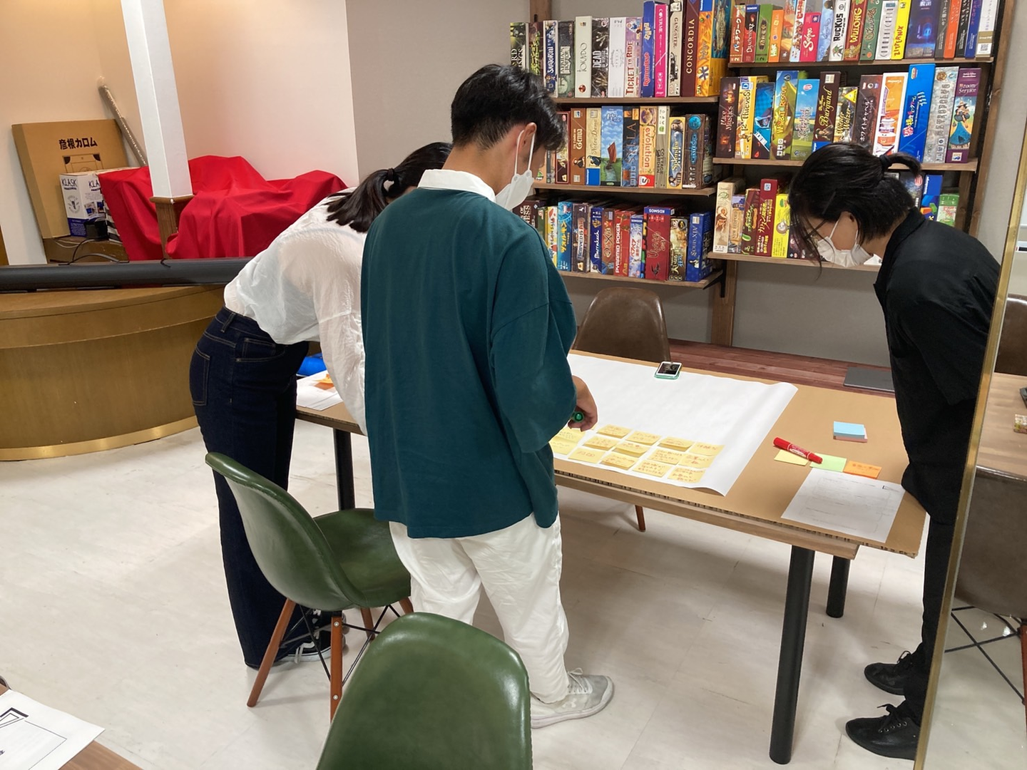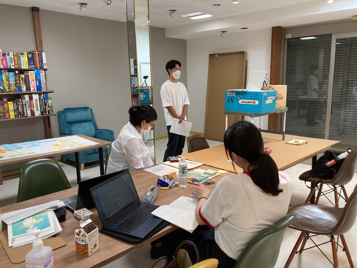 今回インターンを開催するにあたり、彦根事務所の1階にあるボードゲームカフェをお借りしました。学生の表情もワクワクしていて、雰囲気も環境も最高の状態で開催することができました。