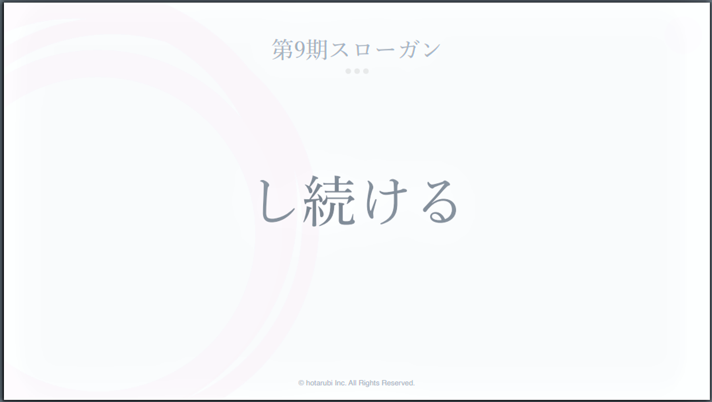 それでは最後に、今期のhotarubiのスローガンが決まりましたので、紹介させていただきます。