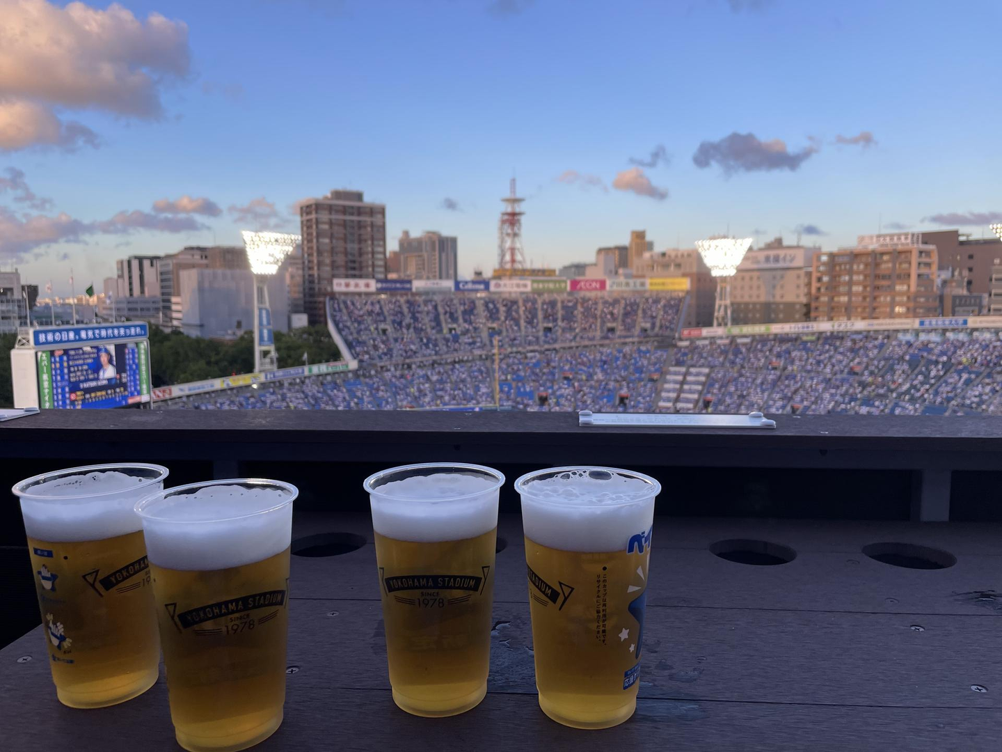 2023年8月某日、社長に横浜スタジアムのボックス席を取っていただき、ベイスターズvs広島戦を見に行きました!暑い夜に星空の下での飲むビールは最高でした!!!