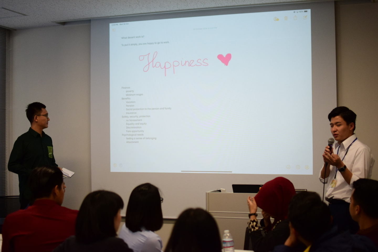 ディーセント・ワークとは「幸せ」と「居心地の良さ」と定義して議論しました。