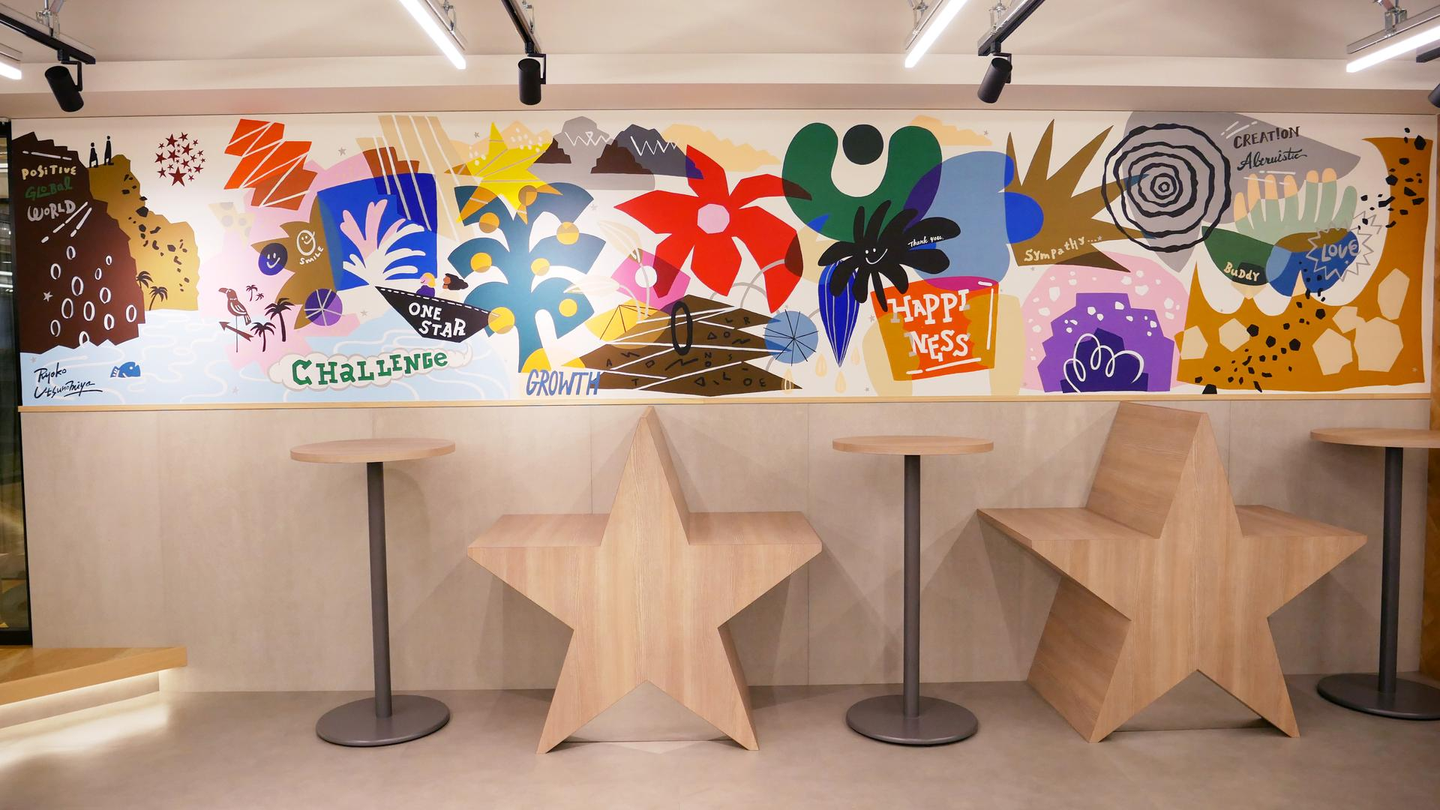 壁にはワンスターの理念である「基本的価値観」を表したオフィスアートが4枚飾られています。