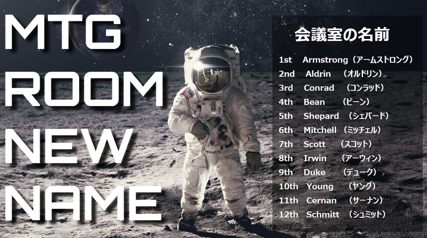 人類の歴史上、月面着陸した人物は12名のみで、会議室の数とぴったりなんです!