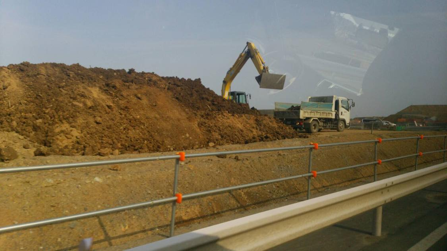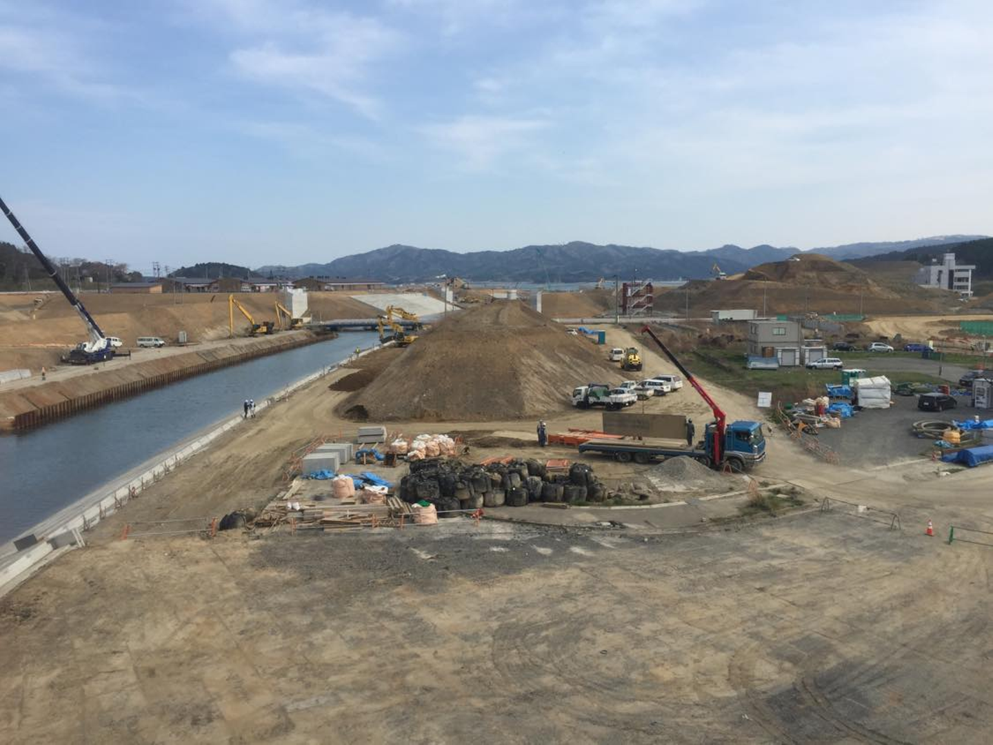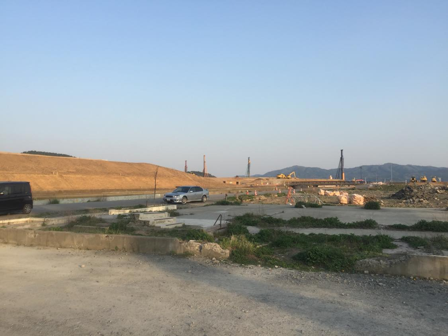 高台工事が始まり、土を高く盛っている状態。ただまだ一部です。