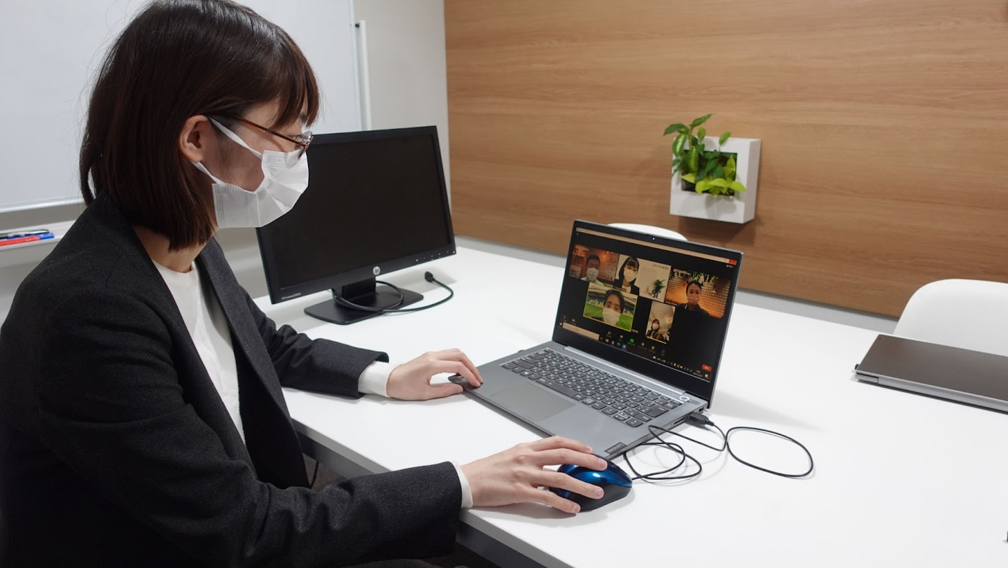 私の所属する課は課長と課員5人のメンバーがいます。支店や在宅勤務のメンバーもいるので、朝礼はオンライン開催です。