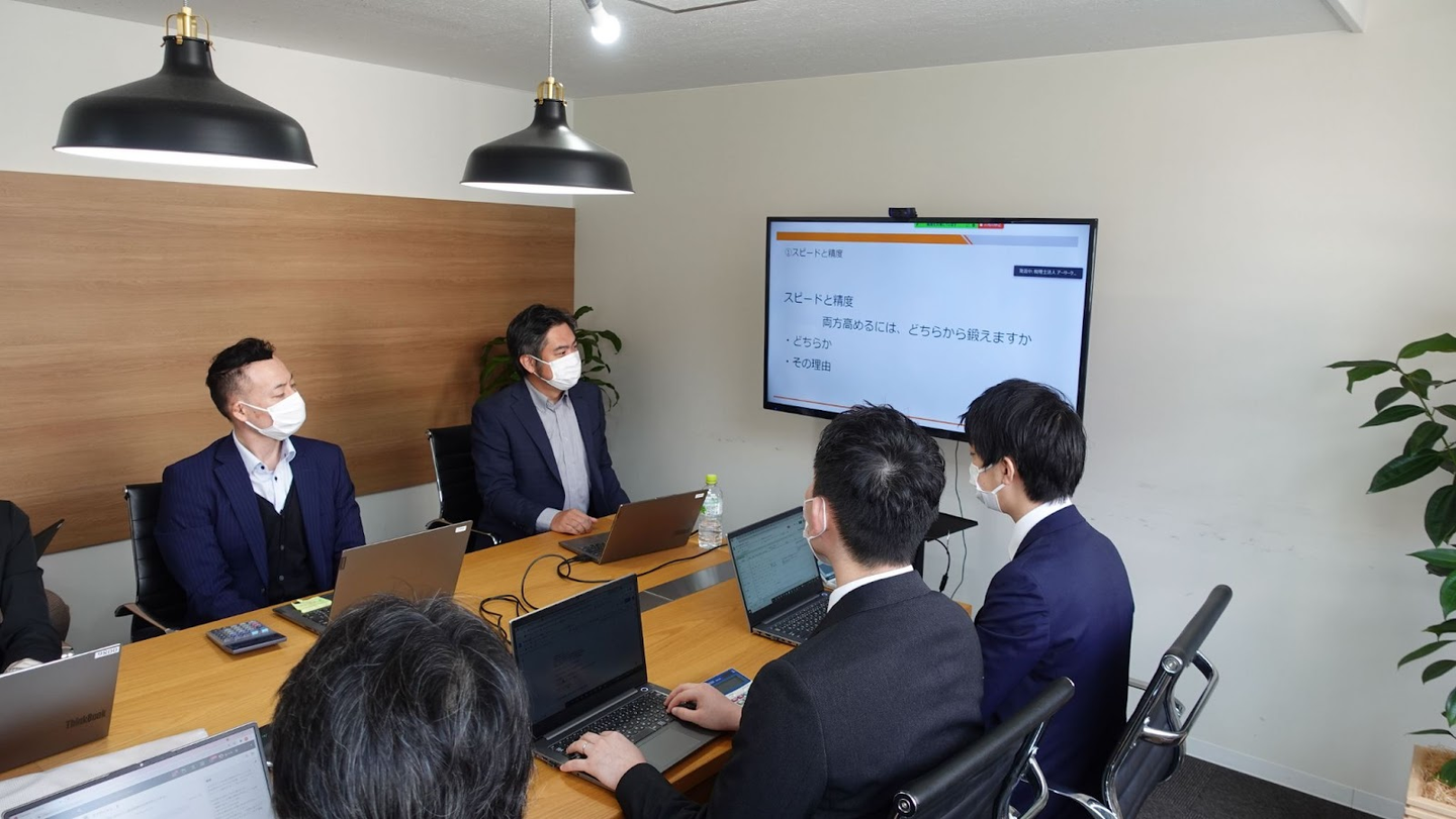 財務支援部全体で、税務についての勉強をしています。より効率的に仕事を進めるために、先輩たちがどのように業務を行っているか、お話を聞きます。講師は部内で持ち回りです。