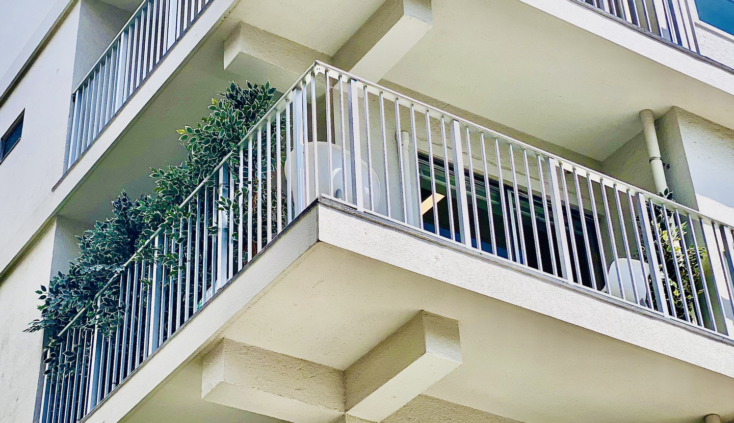 業務部屋のベランダには4本もの観葉植物を置いています。