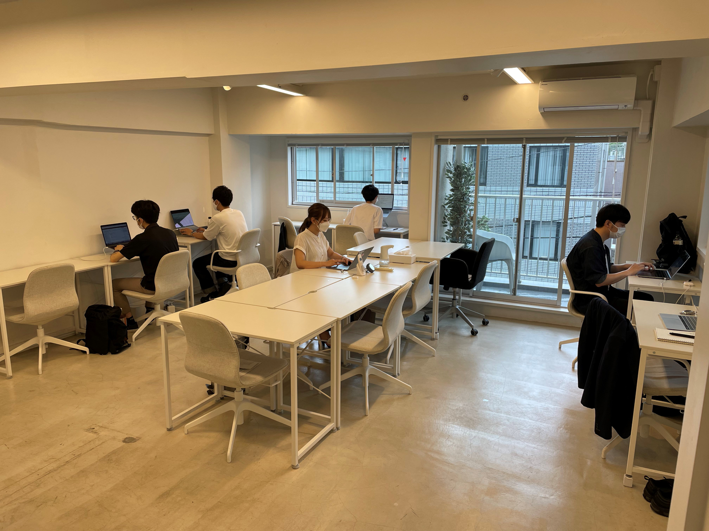 オフィスではフリーアドレス形式をとっています。固定席がないので、座る場所は毎回自由。