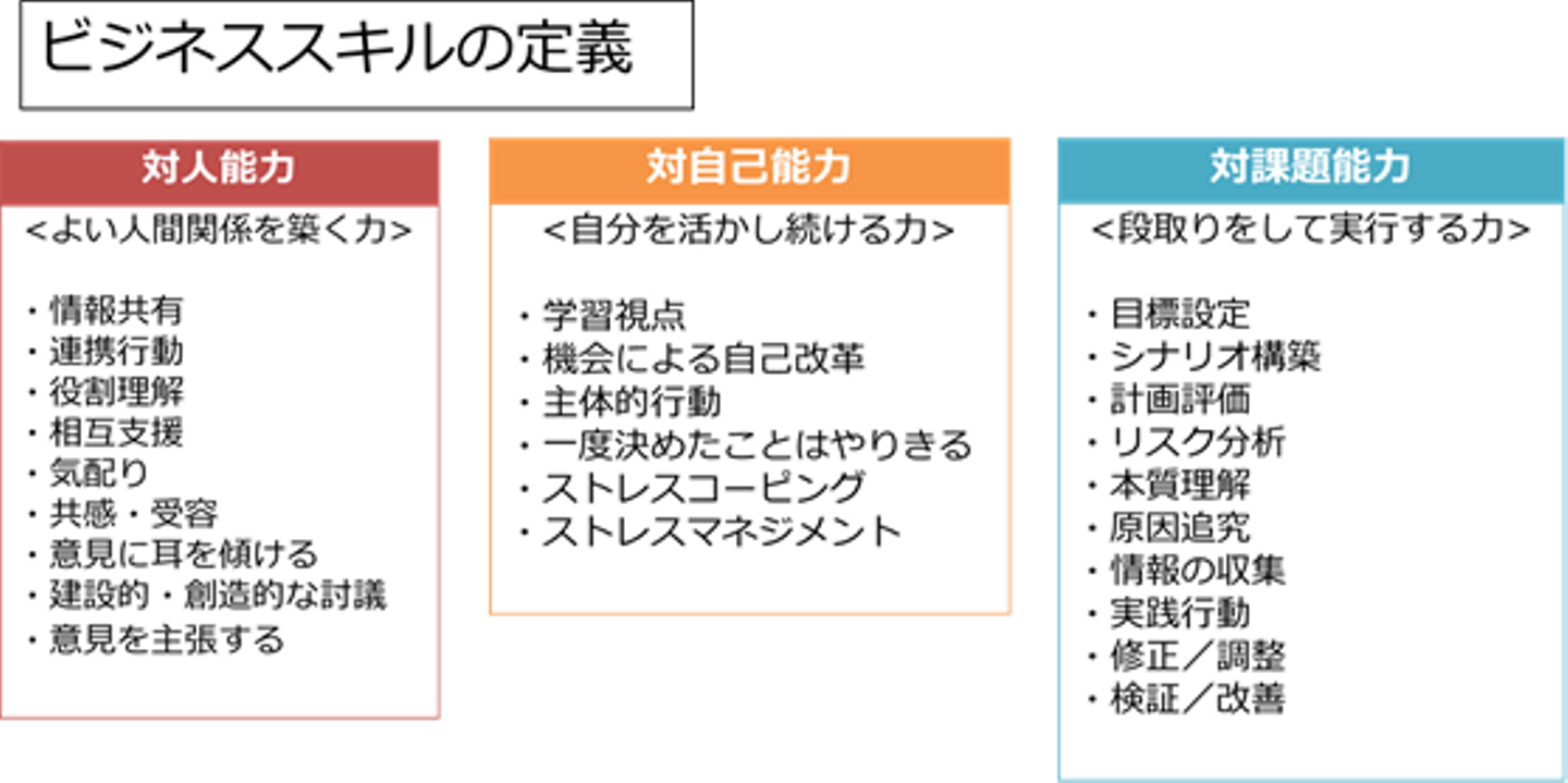 すこし固い言葉で表現してはいますが…、基本的には、ビジネスパーソンとして仕事を進めていくうえで、必要になってくる能力かな、というのをビジネススキルとして考えています。