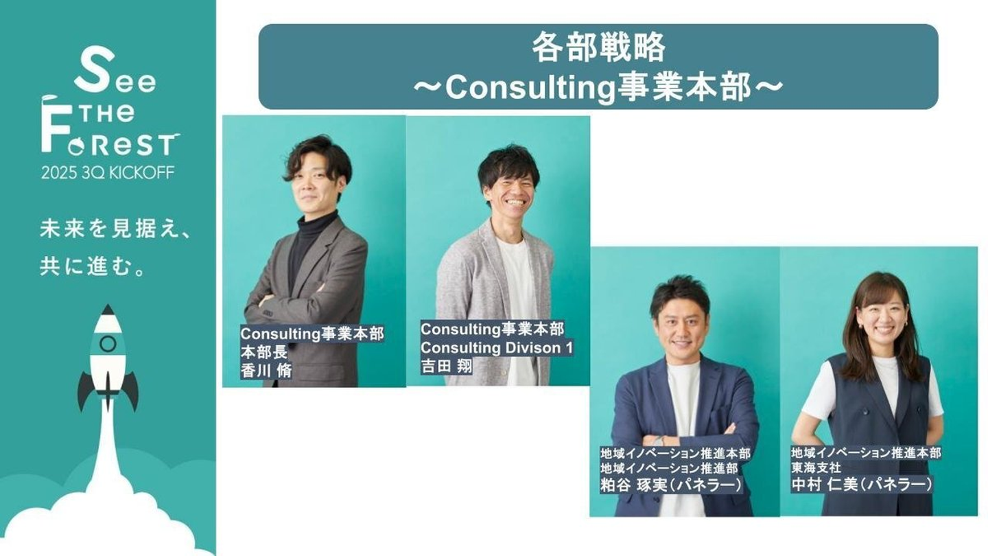 Platform事業本部の萩原さん、Consulting事業本部の服部さん、東海支社の藤井さんによる『同じ答えを導き出せ!「阿吽の呼吸」ゲーム』で盛り上げてもらいました!!