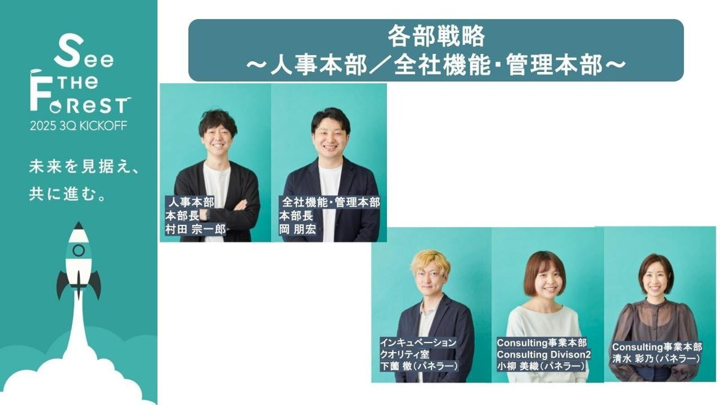 今回は、各本部長、部長の発表後、リーダー、マネジャーのみなさんがパネラーとなり気になったことを深堀りしていくスタイルを取りました。