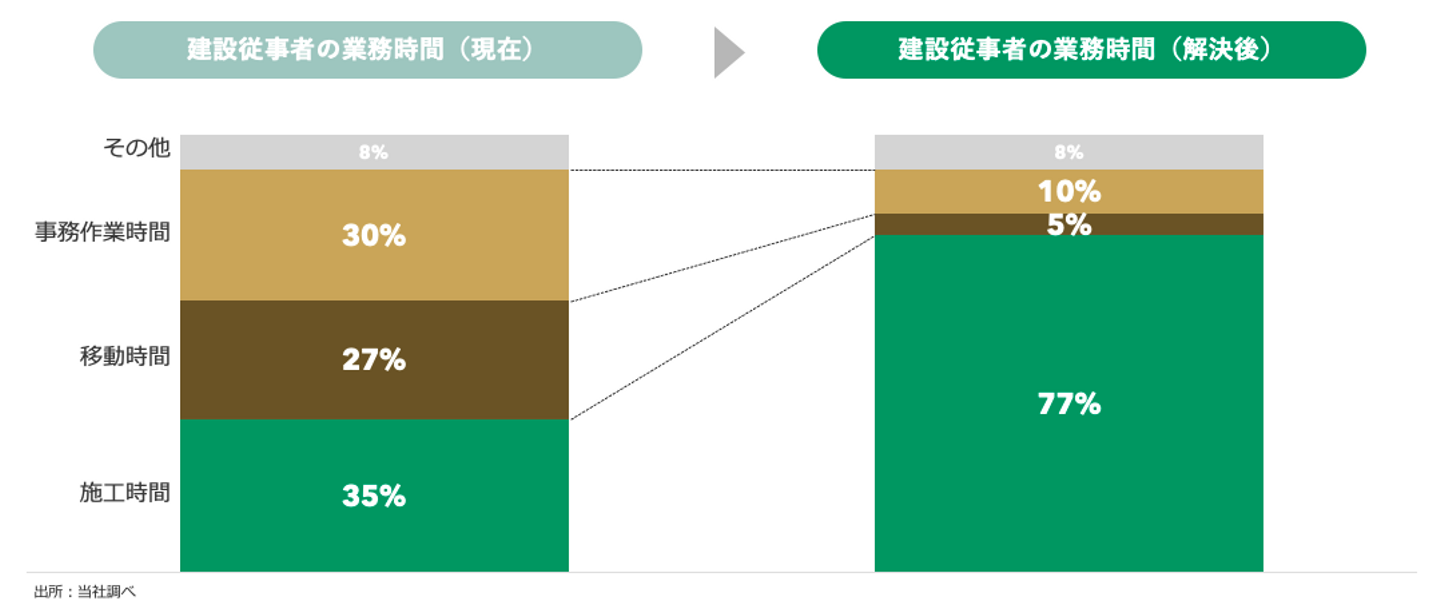 私の義理の父は、土木業を経営しています。業務内容や悩みについて聞いたことがあるのですが、「本当に若手がいない、働きたいという人がいない、そしてその課題は現場作業後の事務作業時間の多さが一因としてある。朝早くから働いた後に夜遅くまで事務作業するのは確かに大変だし、この業界で働く人全員がなんとか現状を変えたいと思っている」とおっしゃっていました。