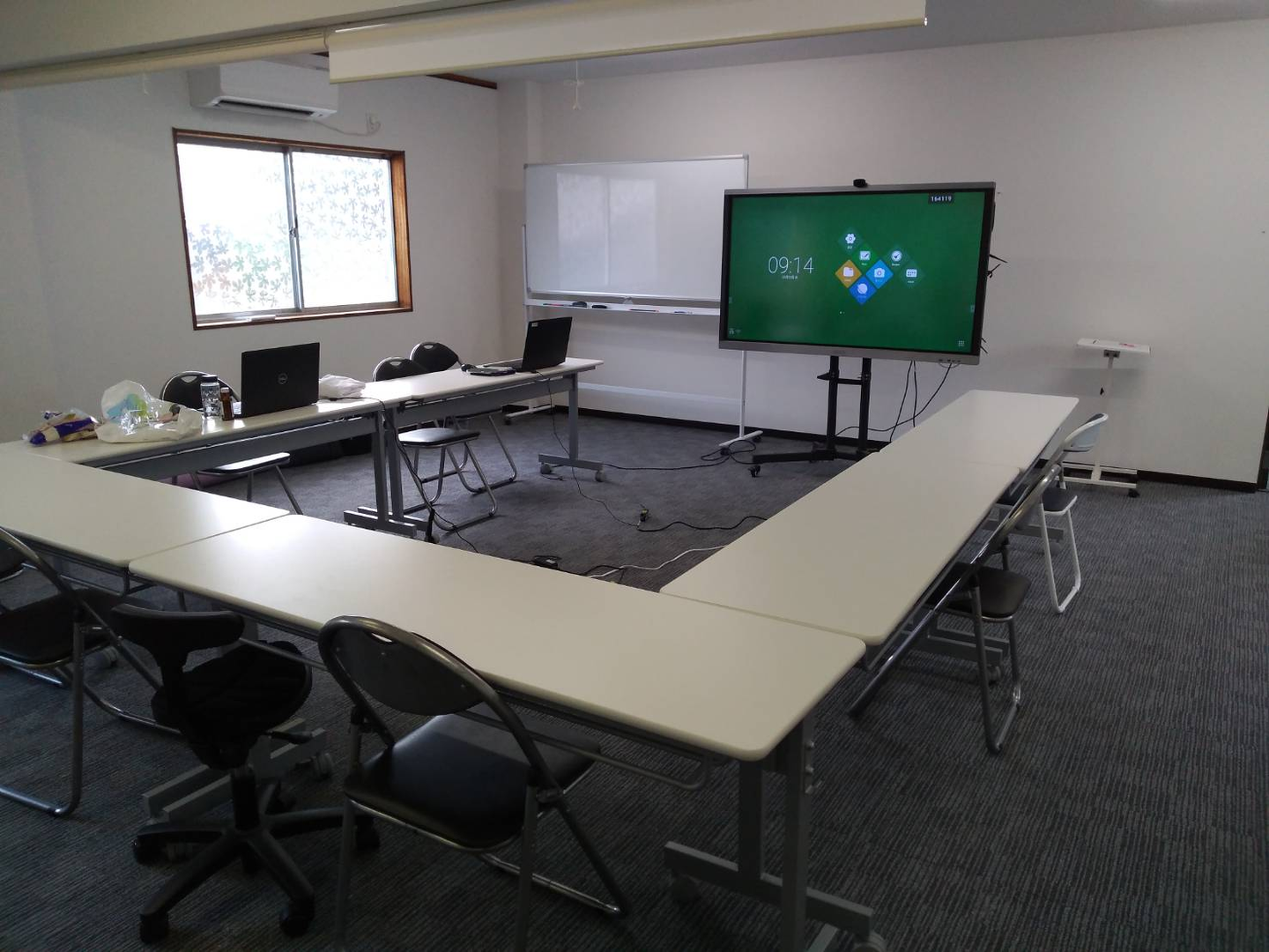 前は皆でこじんまりと会議していたのに、とてもきれいで大スクリーンも迫力ありの会議室が新たに作られていました。