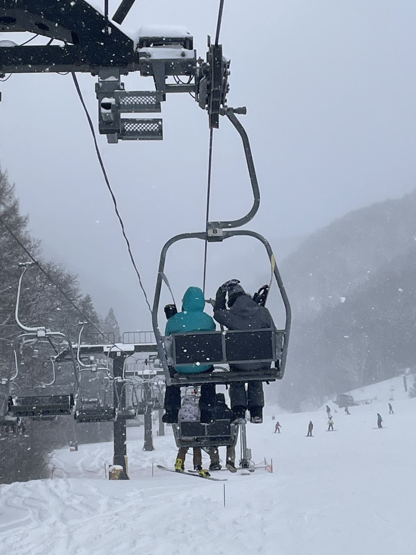 それぞれ必要な板やウェアをレンタルして、早速リフトに乗ります。