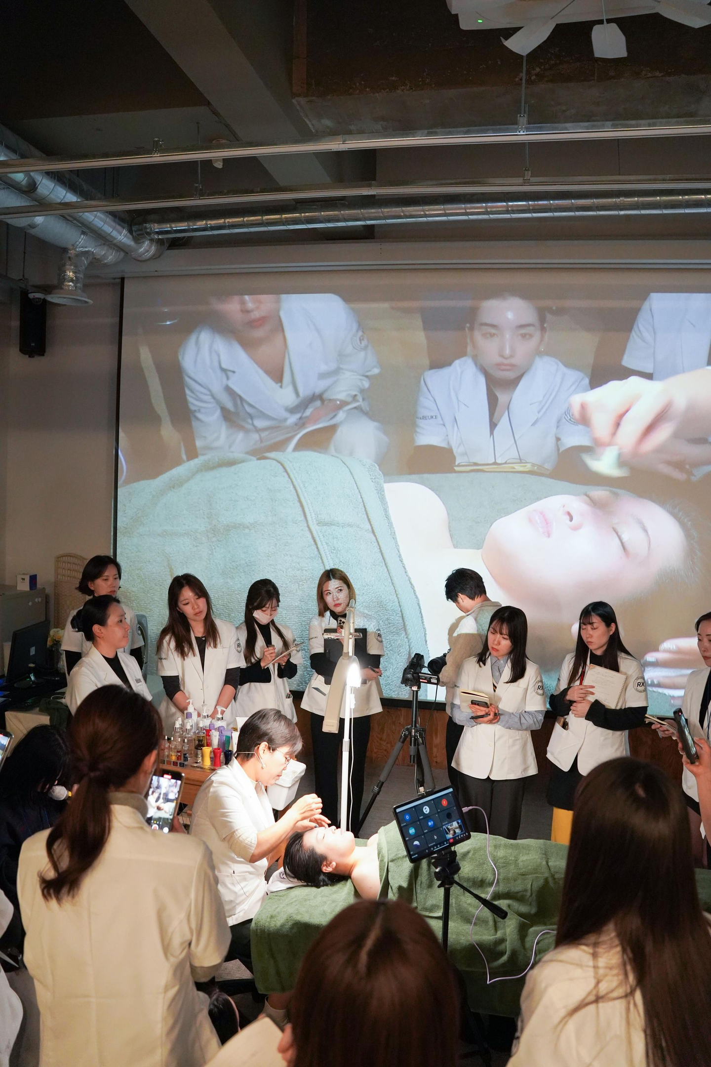 areuke spa CEOグレイス氏によるトロイピール(ハーブピーリング)の実演