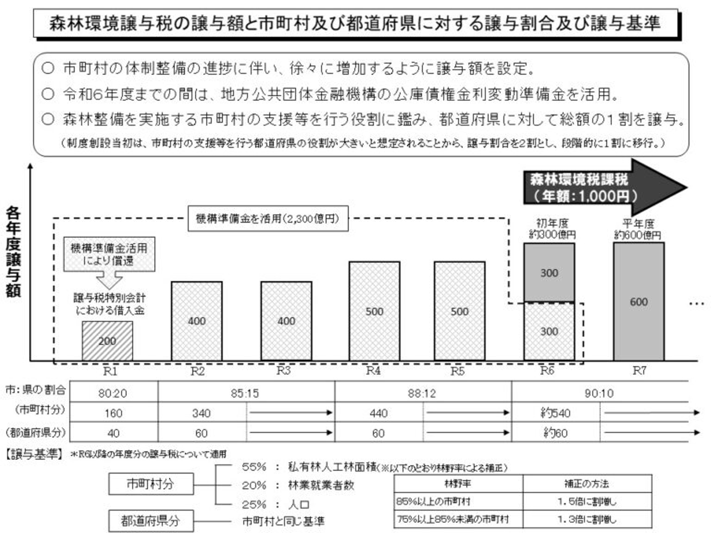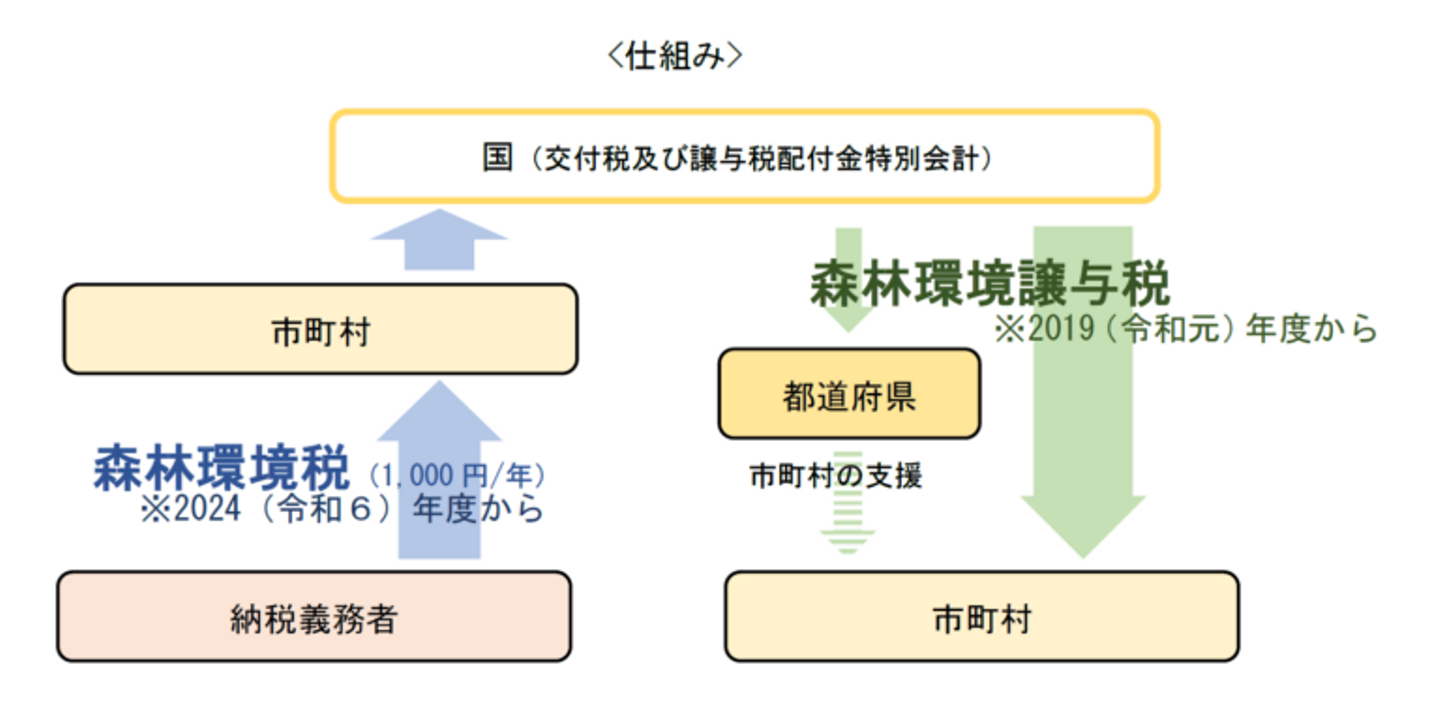 林野庁.「森林環境税及び森林環境譲与税」.https://www.rinya.maff.go.jp/j/keikaku/kankyouzei/kankyouzei_jouyozei.html(2024.6.3取得)