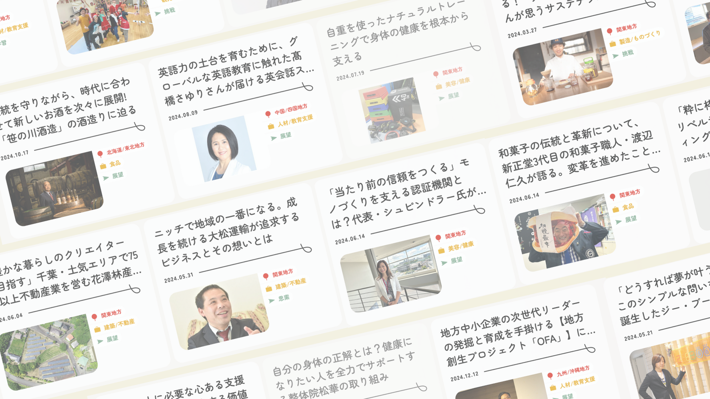 さらに視点検索では、「知見」「挑戦」「思索」といった切り口から、企業や人のストーリーを横断的に読み解くことができます。これにより、普段出会わない角度から地域や事業を見つめ直し、新たな気づきや学びを得られるはずです。