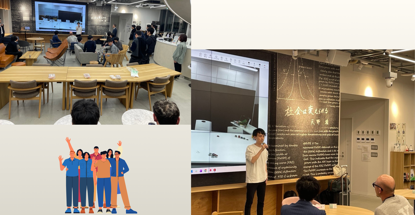 研究内容についての話題や、社会で働くことのやりがいや実際の仕事、将来の進路に関する相談など・・・