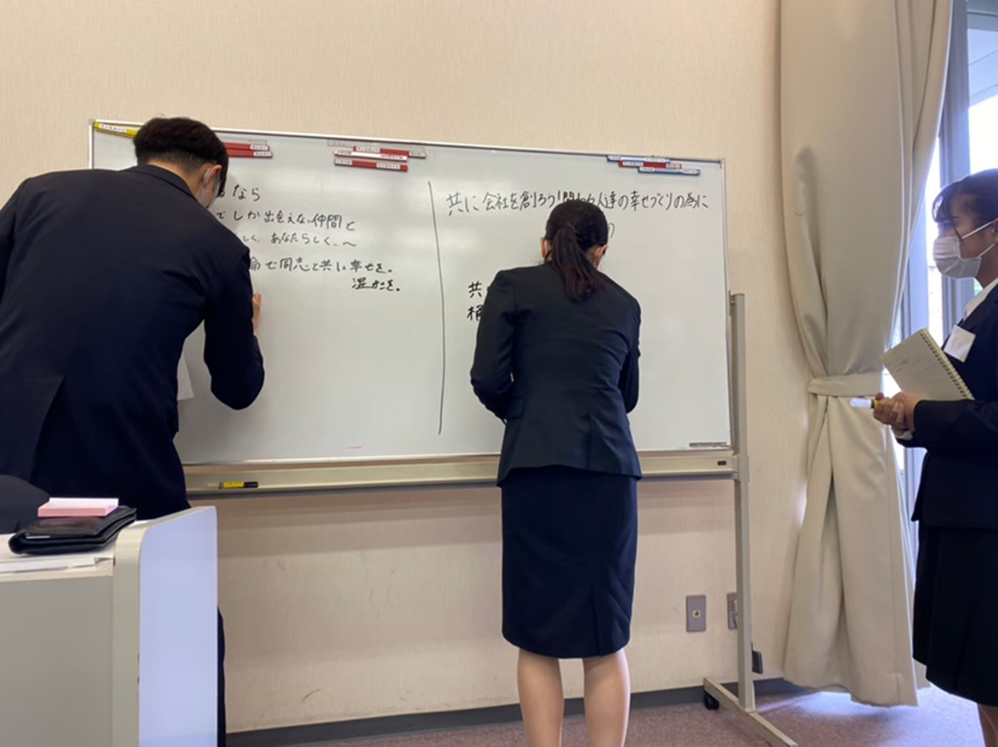どんなアイデアが出ているのか、休憩時間にみんな前に集まって、見ていました。