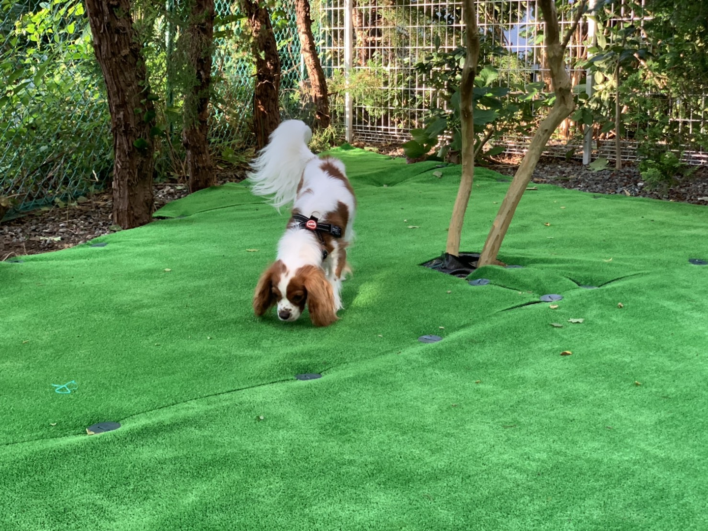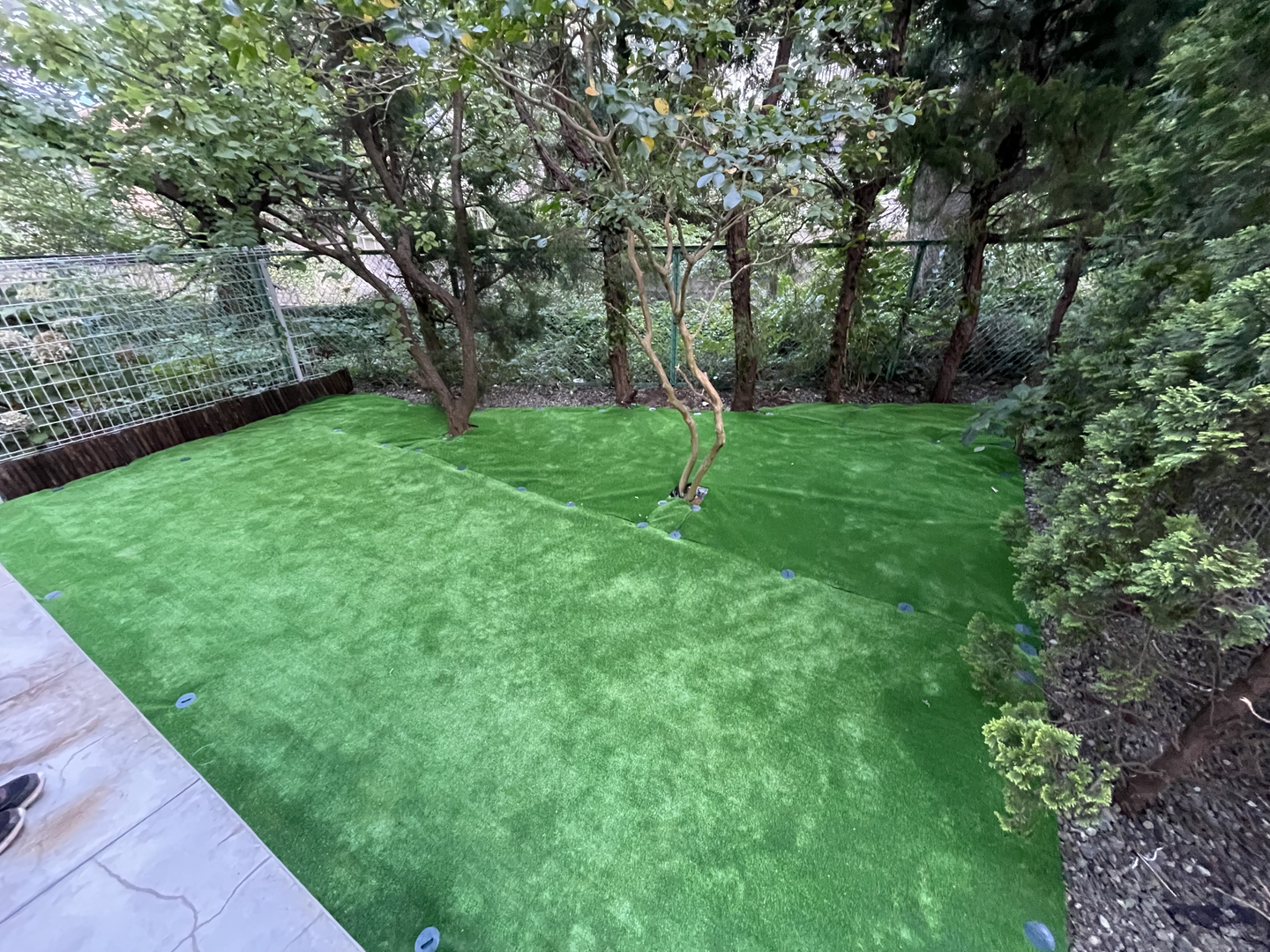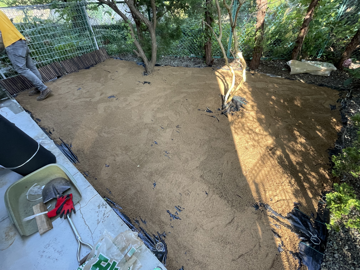 ・ある程度、下地が平らになったのでようやく人工芝の出番!