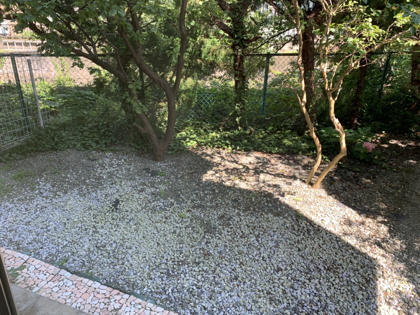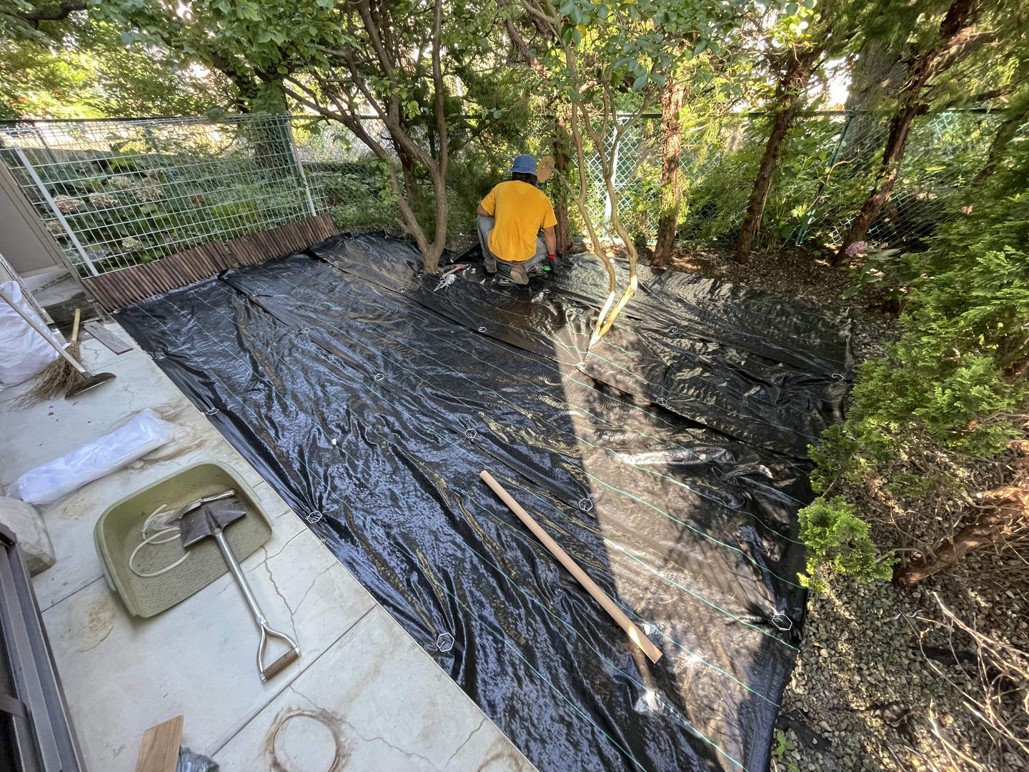 ・草刈り後に砂利を整地して防草シートを全面に敷きました!