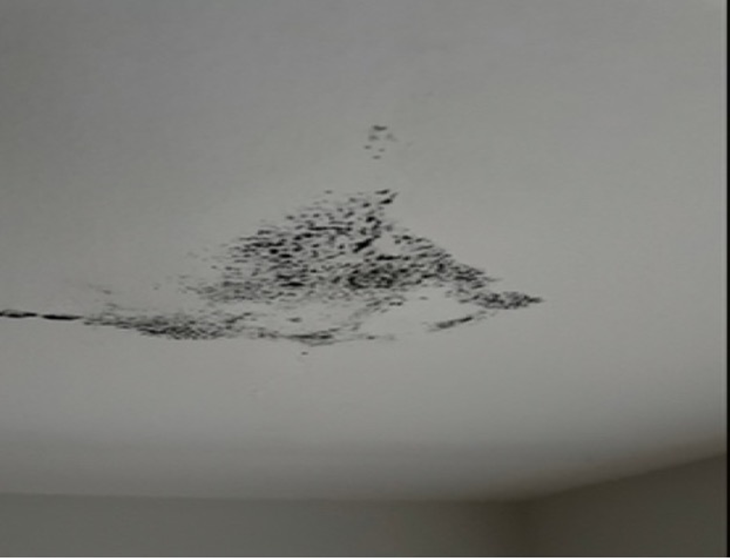 天井が水の重さで落ちかけるくらい下に下がっていました。