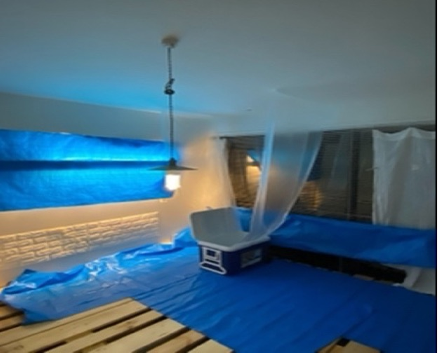 突如、寝室に漏水が起こったことでウッドデッキの着工は延期に・・・