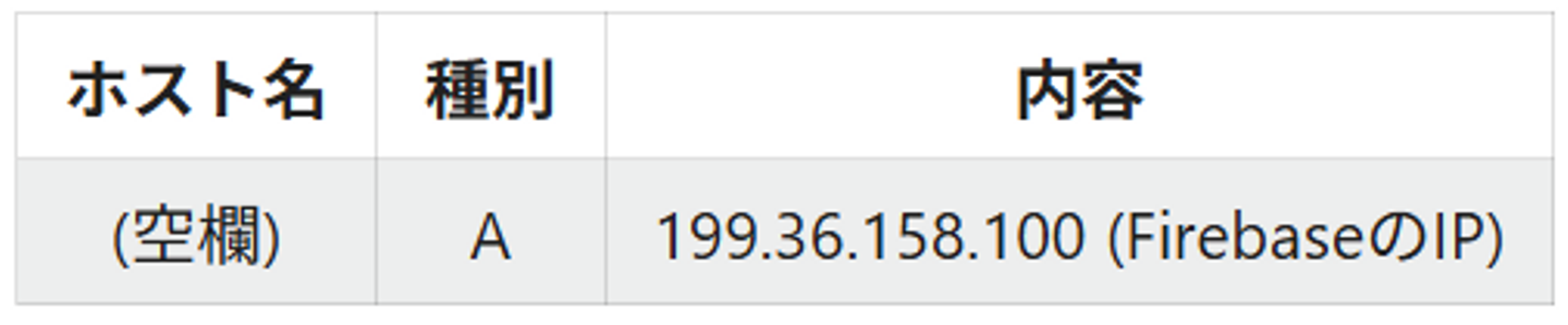 2. FirebaseのIPアドレス をAレコードとして追加。