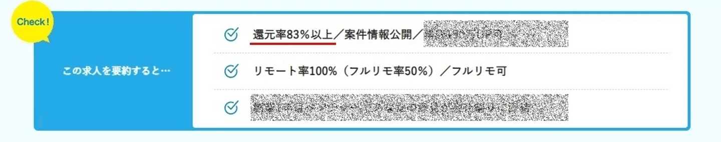 【ポイント】還元率とは受注案件単価に対して、どの比率で給与や賞与として還元するかを表す指標です。