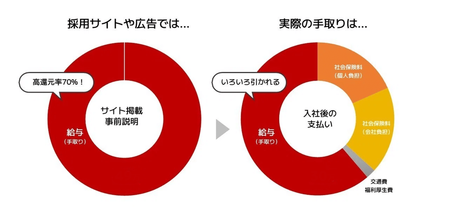 ▼求職者目線 → 給与(手取り)が高そうに見える。