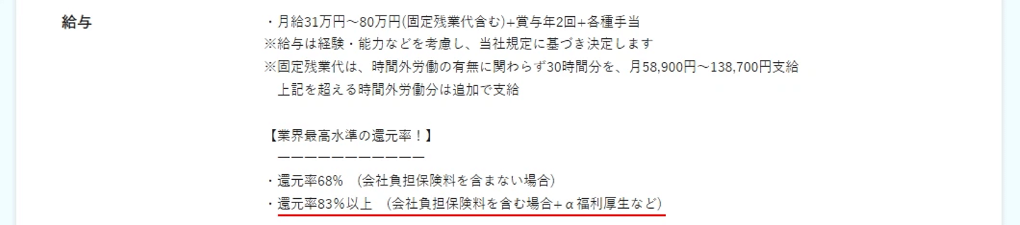 求人の「給与還元率◯◯%~」でも給与はそれ以下ということもあります。
