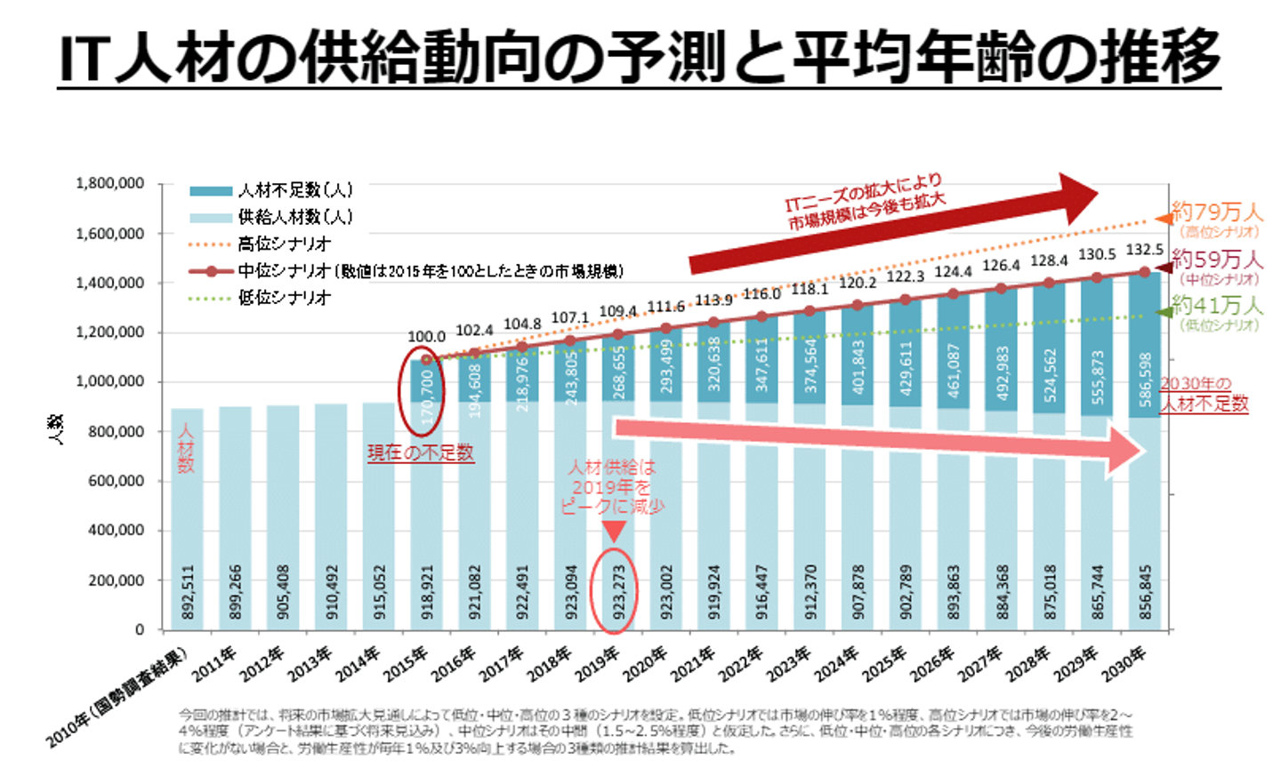 ここでのポイントが、現在のSES業界では「ITエンジニアの人材不足」ではあるが、「ITエンジニアの人材不足」ではないのです。