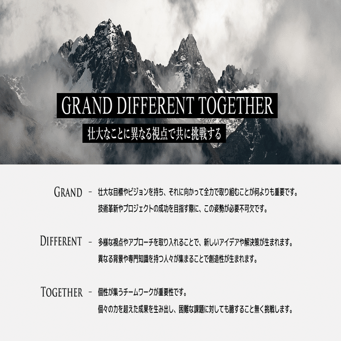 「壮大なことに異なる視点で共に挑戦する。」