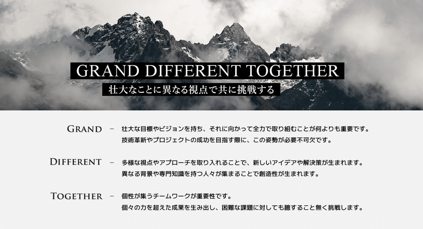 Grand(壮大な)Different(異なる)Together(共に)の頭文字を取ってGRADITO(造語)にしました。
