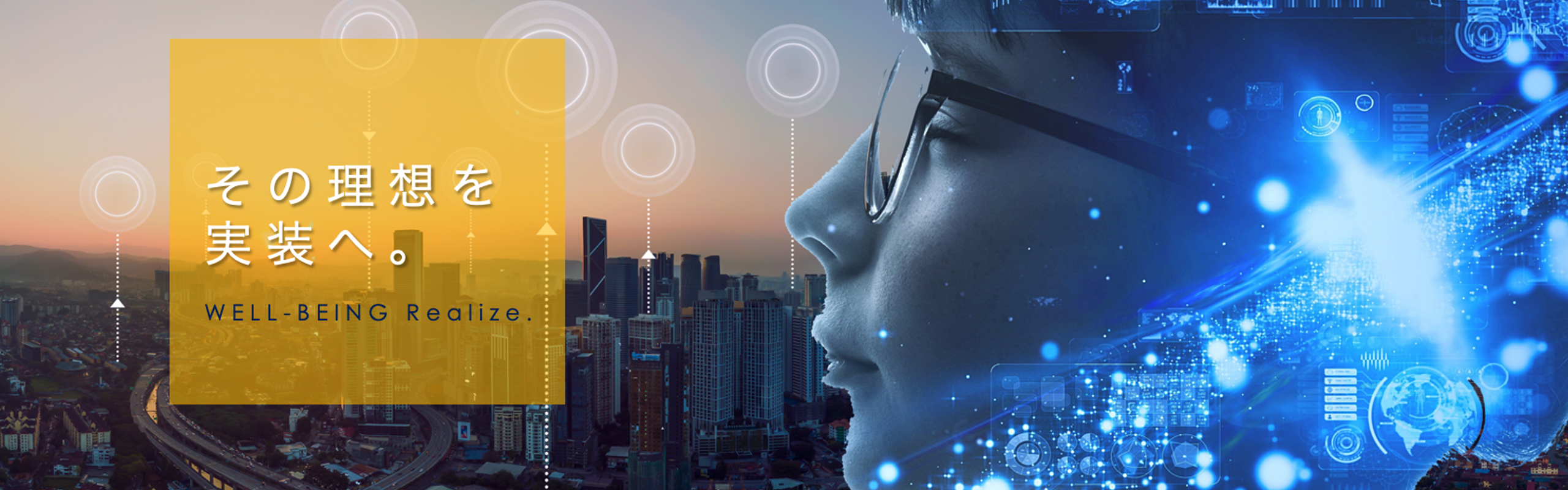 WELL-BEING Realize. 世は空前の転換期。 私たちは、DXプロデュース企業として 人々の想いや願いが込められた “理想たち”を具現化し、 ウェルビーイングな社会の実現を目指します。