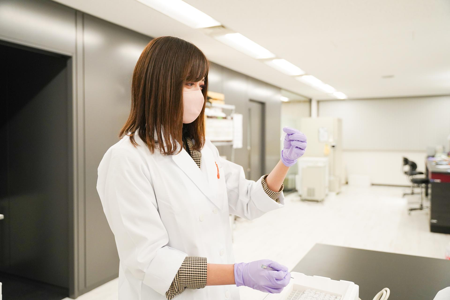 特に、生体サンプルを取り扱う業務は今までの人生でまったく経験のない作業ばかりだったので、最初は怖かったですが、知識のない私でも対応できるよう、メンバーが本当につきっきりで教えてくれたんです。おかけで、少しずつこなしていけるようになりました。今では当時の教え方を参考に新しく入って来てくれた方々に私が教えられるようになりました。