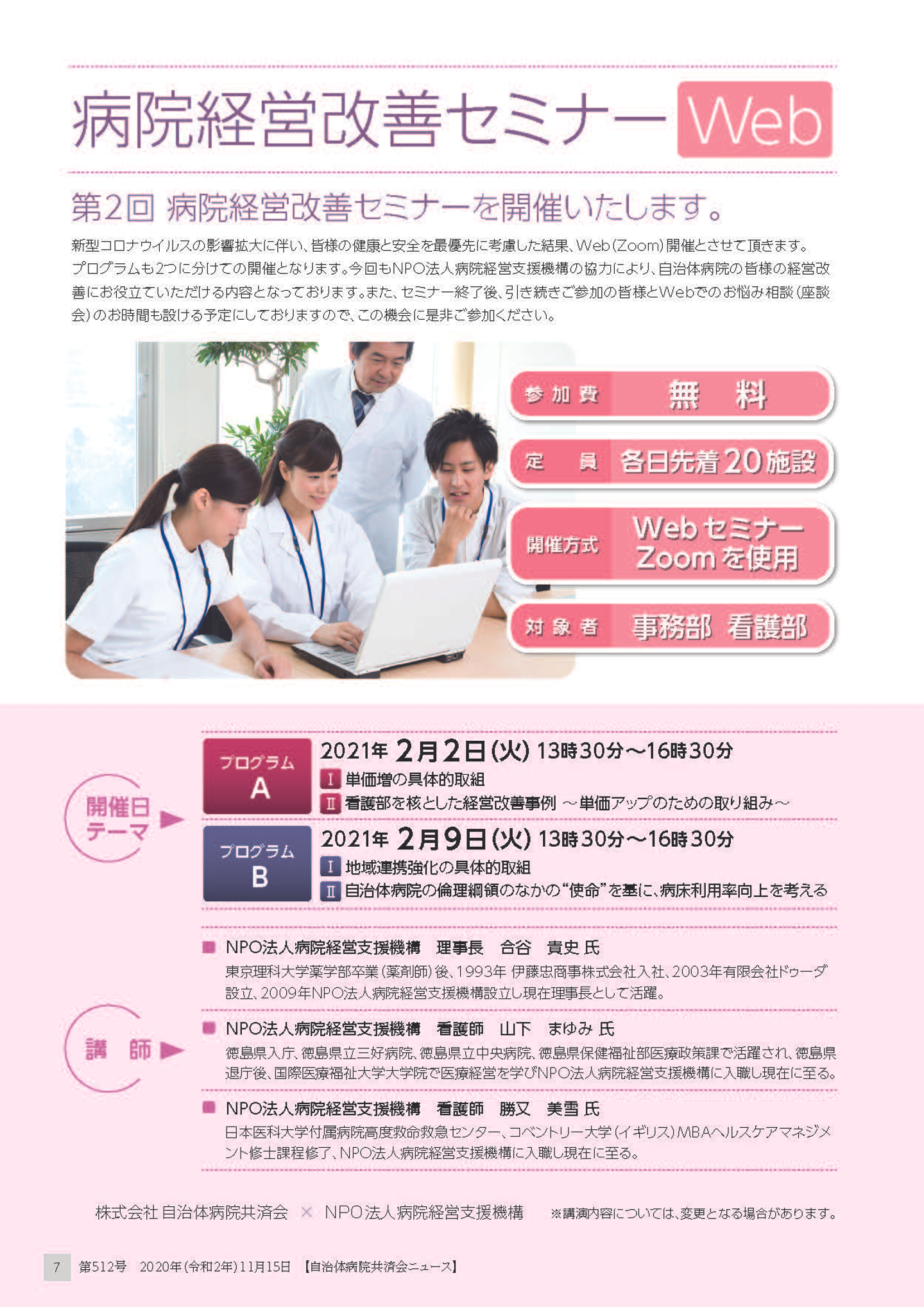 株式会社自治体病院共済会様主催による、病院経営改善セミナー(事務部・看護部対象)を開催しました。