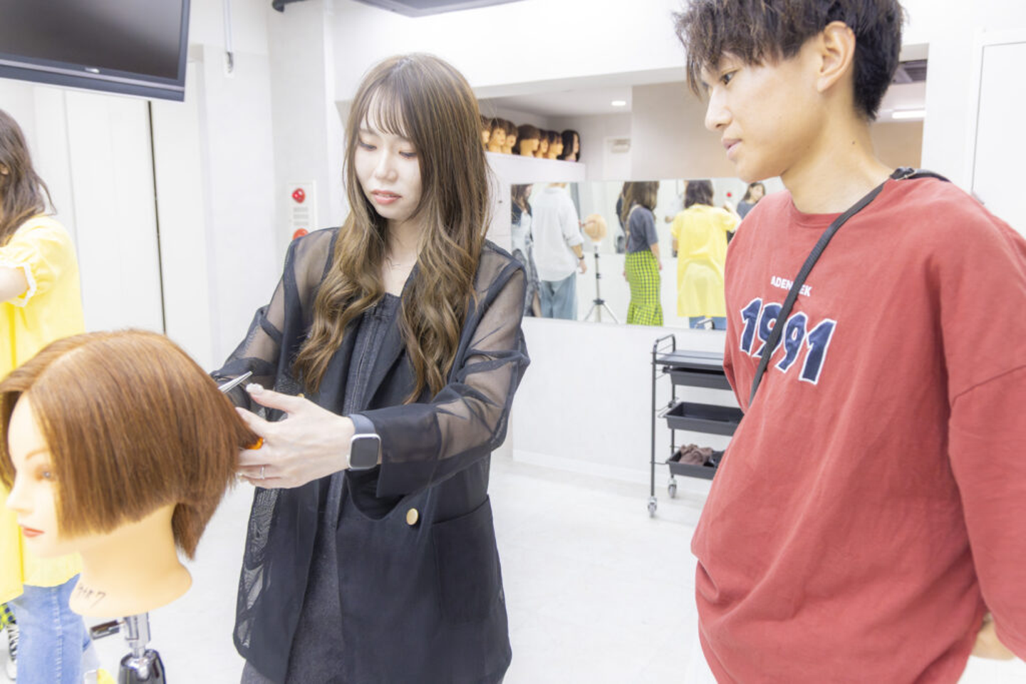 ▲アカデミー生の「?」にはすぐにその場で応えるスピード感を意識。一般的なサロンアシスタントの「先輩に聞く時間がない」「質問しづらい」などのモヤモヤはない